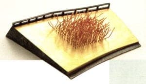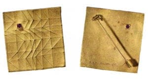 Piergiuliano Reveane, brooch "Tos 208", 2007. Gold, oxidized silver, niello