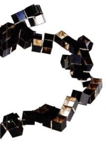 Paolo Maurizio, necklace "Modulo '69 arcobaleno", 1989. Anodized titanium, gold