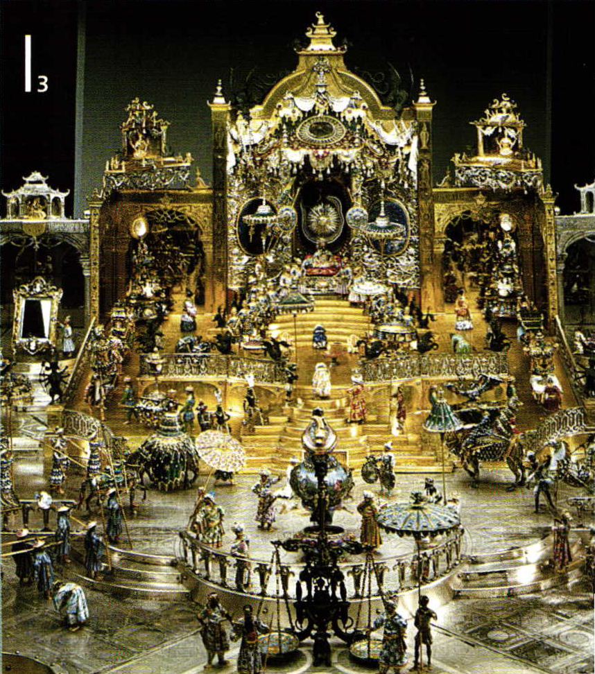 The imaginative pearl figures and the magic, extravagant dishes by the genius goldsmith Dinglinger join with other artworks of such significance that they form a globally unique exhibition. This journey patently describes how aesthetic beauty was previously celebrated at the royal court, sweetening the passage of time. Dinglinger, the court jeweler, worked with two brothers, two sons and fourteen apprentices in order to complete the numerous orders from the Wettin royal family; they also created the showcase cabinet that the sovereign made accessible to the public as the first ruler in Europe.