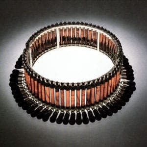 In addition to her studio work, she was associate professor and director of the Metals Program at Kent State University and taught design at the University of Akron and the Akron Art Institute. In 1968, she began teaching in the summer program at Penland School. When she moved to New York, she joined the faculty at Parsons School of Design, and, in 1980, became chair of the Department of Clay, Metal, Glass and Textiles. Now she lives in Raleigh, North Carolina, and teaches weekly studio courses in jewelry design at Duke University.