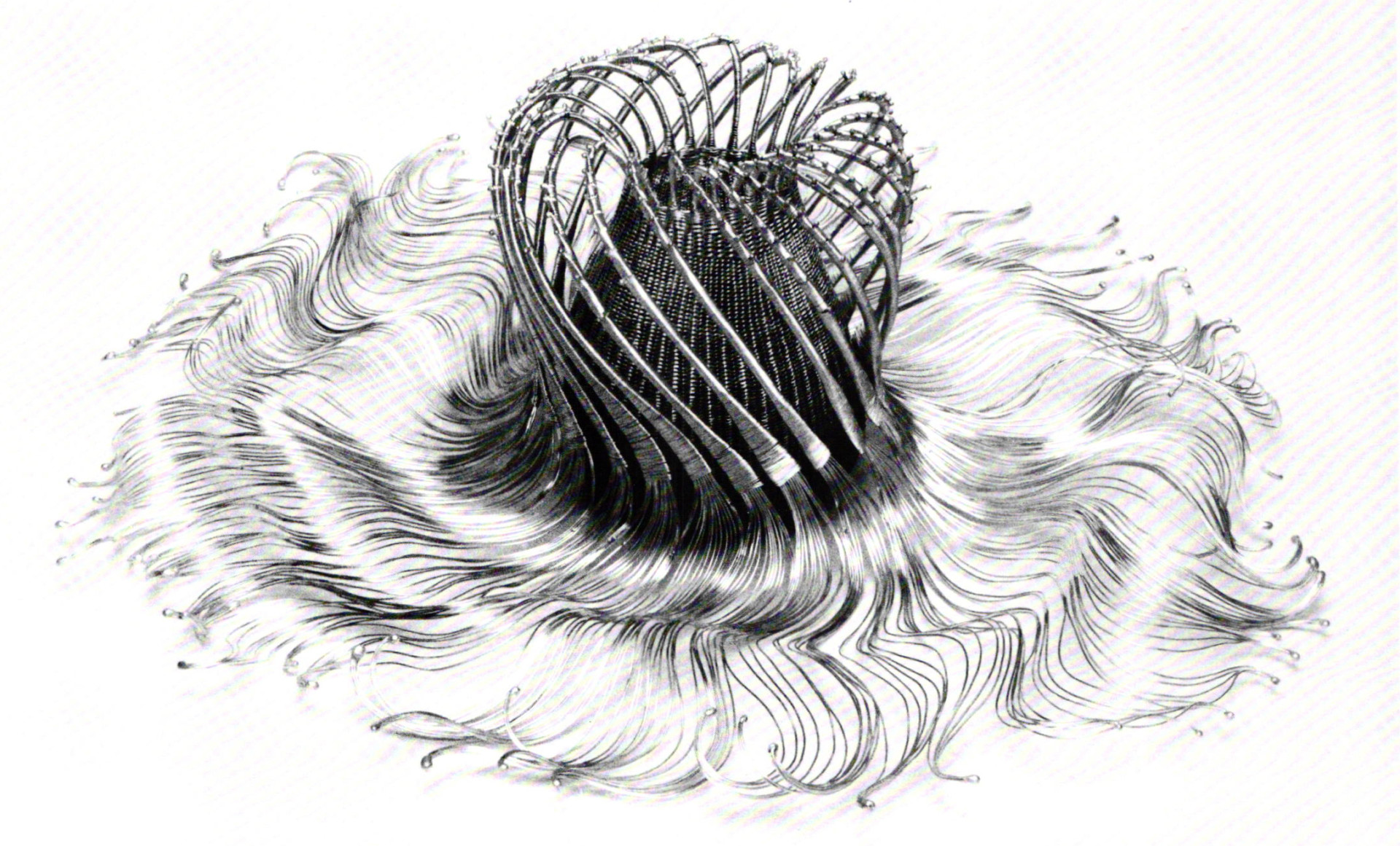 The use of colored wire continued in Forms 3 and 4. While Mary Lee Hu pursued simpler designs in the choker series, she also produced complicated pieces that she called "forms." From the start of her career, Mary Lee Hu had made works that were not jewelry. Parallel to the neckpieces, she had made animal forms to see if she could control her technique in making realistic images and had continued to make such objects off and on. By 1976, the objects she conceived had become more complex. Inspired by sea-creature imagery, she developed forms that, echoing nature, were meant to be seen from both top and bottom, with each side revealing a unique yet related shape and design.