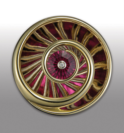 With the yellow gold spiral simulating the shell and the red and white stripes the chambers, the nautilus effect was complete-and serendipitous.