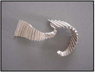 Corrugation adds an amazing inherent strength to thin materials running with the linear dimension of the corrugated pattern. This factor enables one to use finer thinner gauge metals when producing a piece. Hand forming against this linear pattern produces a very strong piece. While corrugation is very strong along the linear dimension of the corrugated pattern, it is fragile along the opposing dimension. When compressed in the opposing frail direction, the troughs and ridges can be made to collapse upon themselves. The creative designer can achieve many exciting forms by taking advantage of these basic factors.