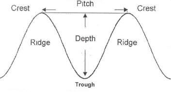 - Pitch: The distance measured between the center point of two adjoining crests.