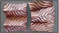 When incorporating two different corrugated metals into a design, creating a second metal layer, it is better to use metal of the same gauge. The depth of corrugation will be the same on each piece resulting in perfect alignment of the crests and troughs to accommodate a tight fit for soldering or crimping the items together.