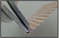 To more easily open a folded and corrugated form, insert a paper wedge in the fold prior to corrugating. Use a slim or regular burnisher to open the element enough to remove the paper. Anneal the element prior to opening it completely.
