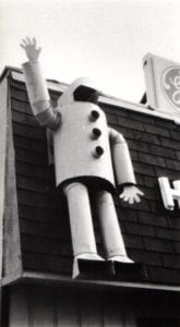 Within cultural history, tin men must be understood as a product of the commercial context in which they are found. It is a simple fact the eye-catching objects draw attention to themselves and to their surroundings. Tin men—as commercial logos—have stood in front of sheet metal shops for nearly a hundred years. The earliest documented figures seem to have been fabricated in the first decade of the 20th century. Comparable figures are being made today and still perform promotional tasks similar to their predecessors.