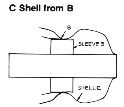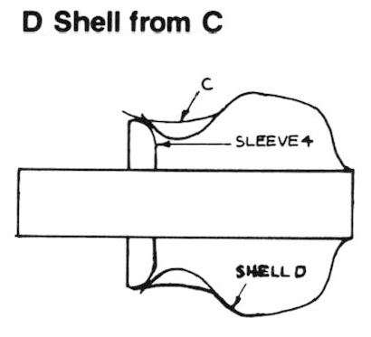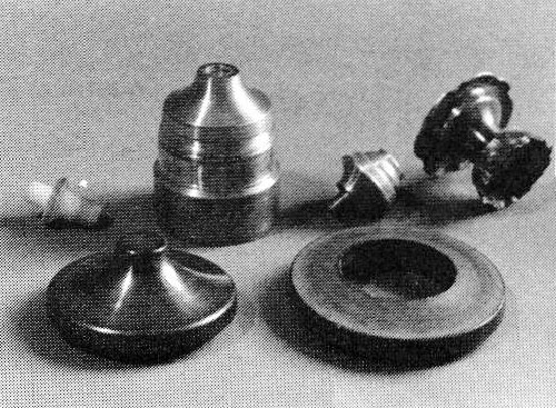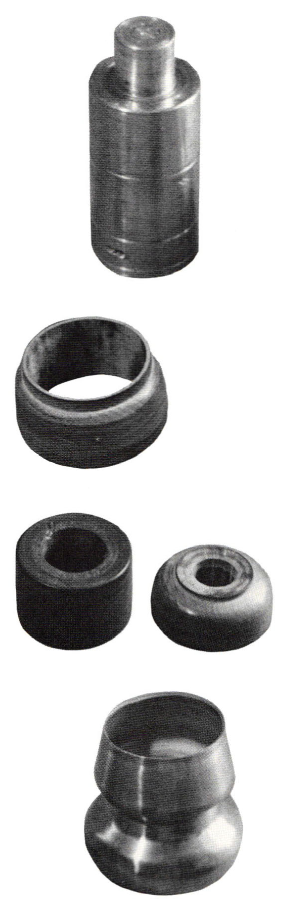 | Combination cylinder/plug chuck with sleeve and two plugs used to form shell shown |