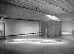 The Garden Project is an installation of seven works. My thoughts, when developing this piece, were centered around issues of family and childhood, loss, aging, and memory. The house, Recourse; garden, Past Time and, river/path, Horizontal Approach are the central works of the installation. The door, As Far As One Knows; stones, Between Past and Present; watering cans, Blackbirds and silver service, Service for Six extend the primary ideas in several directions.