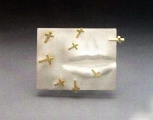 I am interested in creating jewelry that is abstracted yet ties to various forms in nature as well as to my own personal history. There are aspects of my brooches that are rationalized and others that remain intuitive. This layering of information hopefully adds a sense of mystery and ambiguity to the work.