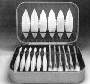 It was my intent with the two vases, Feuille and Cayeux, to create vessels that would not only complement flowers but also stand on their own. These pieces are straight forward and functional. I chose to make them in sterling silver because of the beauty of the metal. With the work there is an intertwining of my past and present interests. I look at my work as a three dimensional diary marking events or memories in my life.