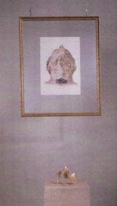 While creating this body of work, I have been preoccupied with a specific three-dimensional form that I personally imagine to be figurative. These forms are elongated and usually suggest a head, torso, tail, or skirt. My involvement with this abstracted figure may be connected with my interest in historical costumes and perhaps earlier ballet training. However, these forms are not singularly related to the figure. They have amorphous qualities which may suggest the relationship to the form of a pod, flower, or sea creature. It is my intention that this interaction between a figure and a plant-like form arouse curiosity in the viewer through its obscure nature.