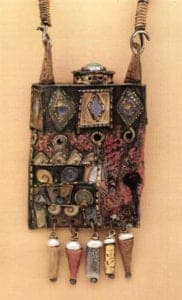I started making jewelry for myself while studying art in college. At that time I felt a slight insecurity about jewelry as a serious art form. "Real" artists made art for arts sake. But as time went on, the jewelry grew into something more then decoration for mc. All of the things I could not express in words or other images went into these adornments. Wearing each piece was like being myself from the inside out. There was actually a stage where I felt incomplete without some form of jewelry to fill in the gap. My work has grown and transformed a great deal since those first pieces, but my inspiration has remained rooted in a search for history and identity, both personally and culturally, a common thread which somehow connects what is now to what has been.