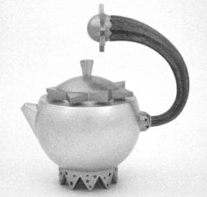 The forms I use are generated by a combination of spun and hand work. My strongest artistic references are animal and human gestures. These I employ to give life to the simple geometric forms. I am still amazed by the range of attitudes that can be conveyed by the tilt of a spout or the angle of a handle. Lately, I have become more aware of the lift a piece leads once outside, my hands. Maintainable finishes and durability have become much more important. The ability of the pieces to function was not, at first, my prime objective but as time has passed I've accepted more the role of being a silversmith end all that entails. Functionality at times has been an annoying challenge yet at the same time has opened up new avenues particularly in the presentation and display of tea services.