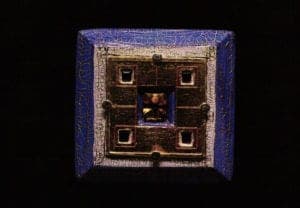 These carved, painted and gold leafed maple wood forms serve as containers for relics. These reliquaries house elements from the natural world: sand, earth pigments, bone and light.