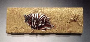 Kelso is probably the best known as a maker of exquisite, netsuke, knife fittings and sword furniture. He started out studying wooden boat building, and made stringed instruments from 1972 to 1976. In the late 1970s, Kelso was engraving knives. Around 1981 he saw a collection of Japanese sword guards in the Smith College Museum in Northampton, Massachusetts, and was inspired to learn the traditional techniques. For a time he worked for blademaker Louis Mills and later studied with tsuba maker Masichi Sakai in Osaka, Japan. His own metalwork was initially quite derivative of Japanese work, but as he gained confidence his imagery has become more American, reflecting Vermont flora and fauna.