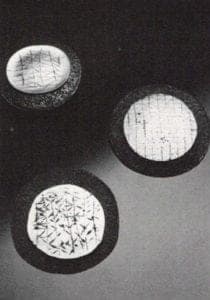 Three artists work in sculptural relief. Mette creates jagged planar forms incorporating cloisonné geometric designs set on obsidianlike plastic. French's work is more fragile in appearance-delicate sandblasted silver wings seem torn and threaten to flutter away gracefully. Macsai's small abstractions are made of silver lines and snakelike waves of copper or gold. The setting is terraced, boxed and sometimes reticulated. Each treasured landscape or well (as he calls them) is framed with heavy borders which have been cleverly enriched with subtle textures.