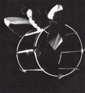 Julia Manhelm, Drum-Shaped Body Cage, plastic tubing and PVC squares, 1983. Photo: David Ward