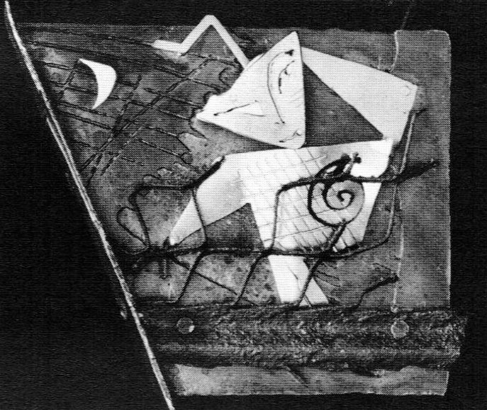 For example, Dreamer, Dark, Dark is a creation of separate visages linked together. The enamel process is one of fusion, of bonding dissimilar materials into new forms. The analogy of content and form is carried further with the distinct planes on a marble base: this is art of assembly, of uniting separate parts into a composite entity with new meanings.