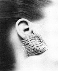 Does our environment really have an impact on what we produce? If it does, then Betsy Douglas must find it comfortable working in the Southwest. Her work seems to echo the sensual forms of the mountains, which appear to fold in and out of the earth. Or perhaps she is inspired by the curves of the human body itself. One of her strongest works was an earpiece designed to cover the entire ear and which complimented the natural folds of the ear.
