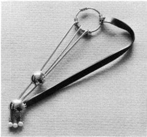 In the past three years a shift seems to be noticeable, from an emphasis on ornamentation and intricate designs towards a more structural and architectural approach in jewelry design. In general, the forms are simpler, paying less attention to beautifying, with its inherent danger of overloading a piece and losing one's self in details. We see, therefore, stronger statements, more mature and deliberate designs. One could also see that the workshops organized by the guild in the past three years were reflected in the pieces presented in the show, and this technical knowledge was used by the individual jewelers in many interesting and personal ways.