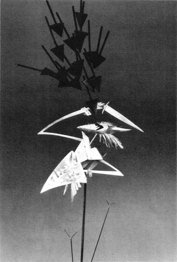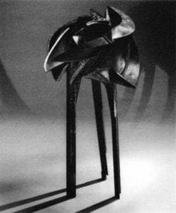 The influence of Cubism is strongly evident in the fragmentation of Havener's forms. The sculptures depicted several aspects of the same object simultaneously in a manner that clearly draws upon the Cubist tradition. The concept of time, so important to the Cubists, was also a concern of Havener's in these pieces. They are contemporary, yet appear to have been transformed over a period of time. The selective use of a green patina to accentuate certain details, in Tri-pod, for example, gave the weathered appearance that copper alloys develop over time. The organic coloration complimented the dynamic forms of the pieces. In this work, time was suggested with the idea that as a form ages and erodes, it breaks down into fragments. The resulting forms did not have the appearance of decay, but rather of growth and life. They were so filled with a sense of captured energy that one could almost imagine that they were undergoing metamorphoses as they were being viewed. The viewer was invited to examine these sculptures from different angles, to explore their every facet. Their mysterious, enigmatic quality was emphasized by one title: Enigma, although this was certainly not the only piece in the exhibition with that quality.