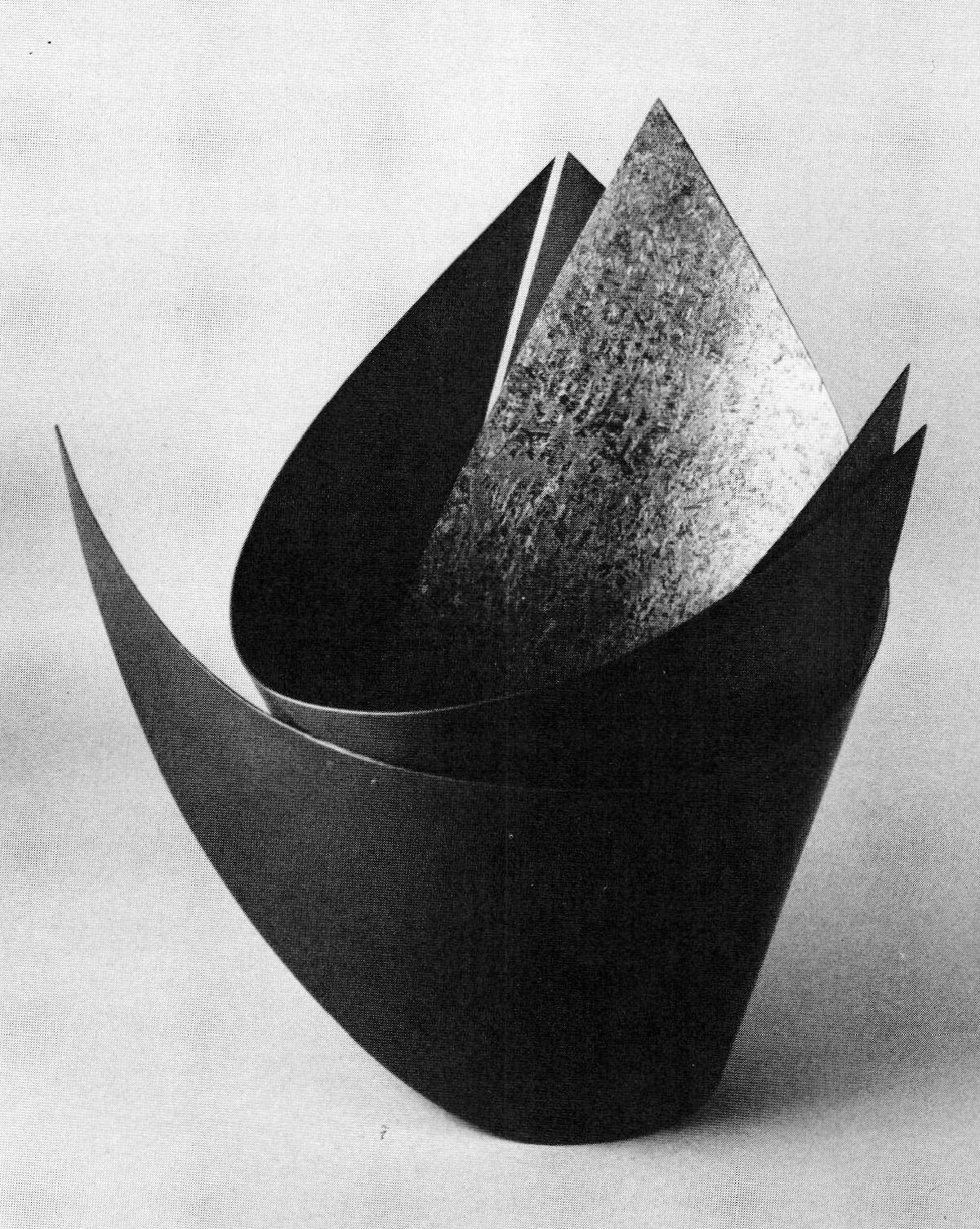 Between these two poles there are a group of artists who have integrated successfully the concepts of historic metalwork into a personalized format that asks to be judged solely on contemporary esthetic merits.