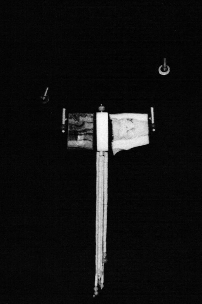 In this reviewer's experience, few jewelry exhibitions have demonstrated with such clarity their conceptual foundations as does the Preservation of the Species series. It communicated lucidly on many levels of related meaning, making successful allusions to aspects of life and art. Each piece consists of a wearable element, which fits into a larger setting executed in similar materials. Together, they are displayed in glass-fronted, wall-hung cases, the largest of which measure about 30 x 40 inches. They are great wings, spreading and rising phoenixlike, with rib-like extensions of metal rod and tubing embracing and paralleling the sweeping forms of the feathers. They are hung with bone and beads, shell and stone. Often a shella stone, a bezel-mounted oval of abalone is centrally located, acting as terminus and focus to the other forms. The effect is heraldic, hierarchic, ceremonial, votive. One is reminded of a which doctor or shaman adorned for supplicant ritual.
