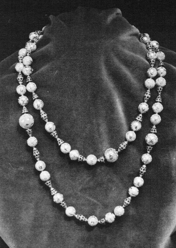 As jewelers we are always concerned with the backgrounds against which our work is worn or shown. Will it be against white walls Iike modern museums or will the feeling for colour and pattern interact with the jewellery to consume it, harmonize with it, or perhaps cause it to take on greater meaning? As a jeweller who has worked in theatre design, Ritchie is certainly aware of all the possibilities of Wallflowers. More timid jewelers might have played safe with the acid-free papers of the museum approach, but Ritchie chose to explore the possibilities of jewellery against decorative backgrounds.