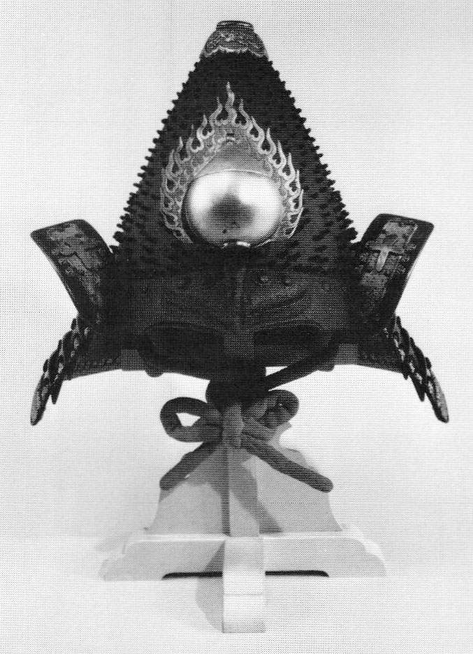 Like European princes during the Renaissance, the Sengoku Daimyō sought to master far more than those skills required of a military commander or provincial ruler. The martial costume of the day was Yoroi (armour) composed of thin steel plates laced together with braided silk tape. This provided the wearer with a strong, flexible and lightweight defense against arrows and edged weapons. The helmet, more than any other component of the Yoroi served to express the identity of the warrior. The traditional helmet, or Kabuto, was comprised of the Hachi, or helmet bowl, from which was suspended the Shikoro, or neck guard. The latter formed somewhat of a low brim encompassing the back of the helmet. On either side of the frong of the hachi, near the base, were two small flaps (Fukigaeshi), which at one time had been part of the shikoro.