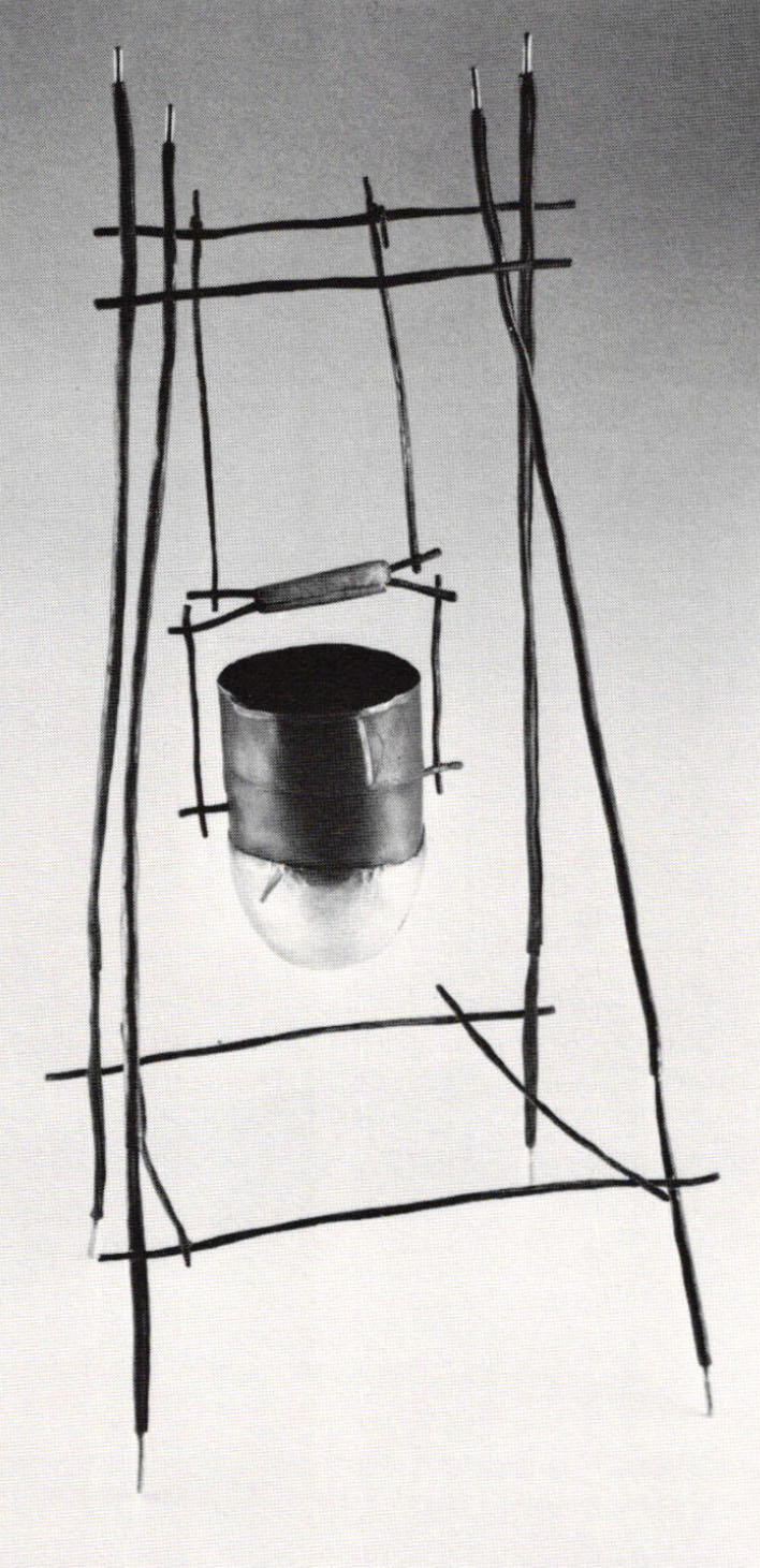 If you are familiar with Bach's work, it is likely to be her cosmetic brushes, they are beautiful, functional and irresistably appealing. What I know her best for is a fearless and prolific search for new forms, new challenges and unpredictable combinations. She may delve into the possibilities of large copper baskets casually formed and lead soldered, or gold and silver enro containers or brushes of all manner. Next she will be making tiny little bird nests or powerful fetishes, then long rambling necklaces sprinkled with nonmetal items. All breathe a facile control of the metal in what she terms a "natural, pre-industrial look."