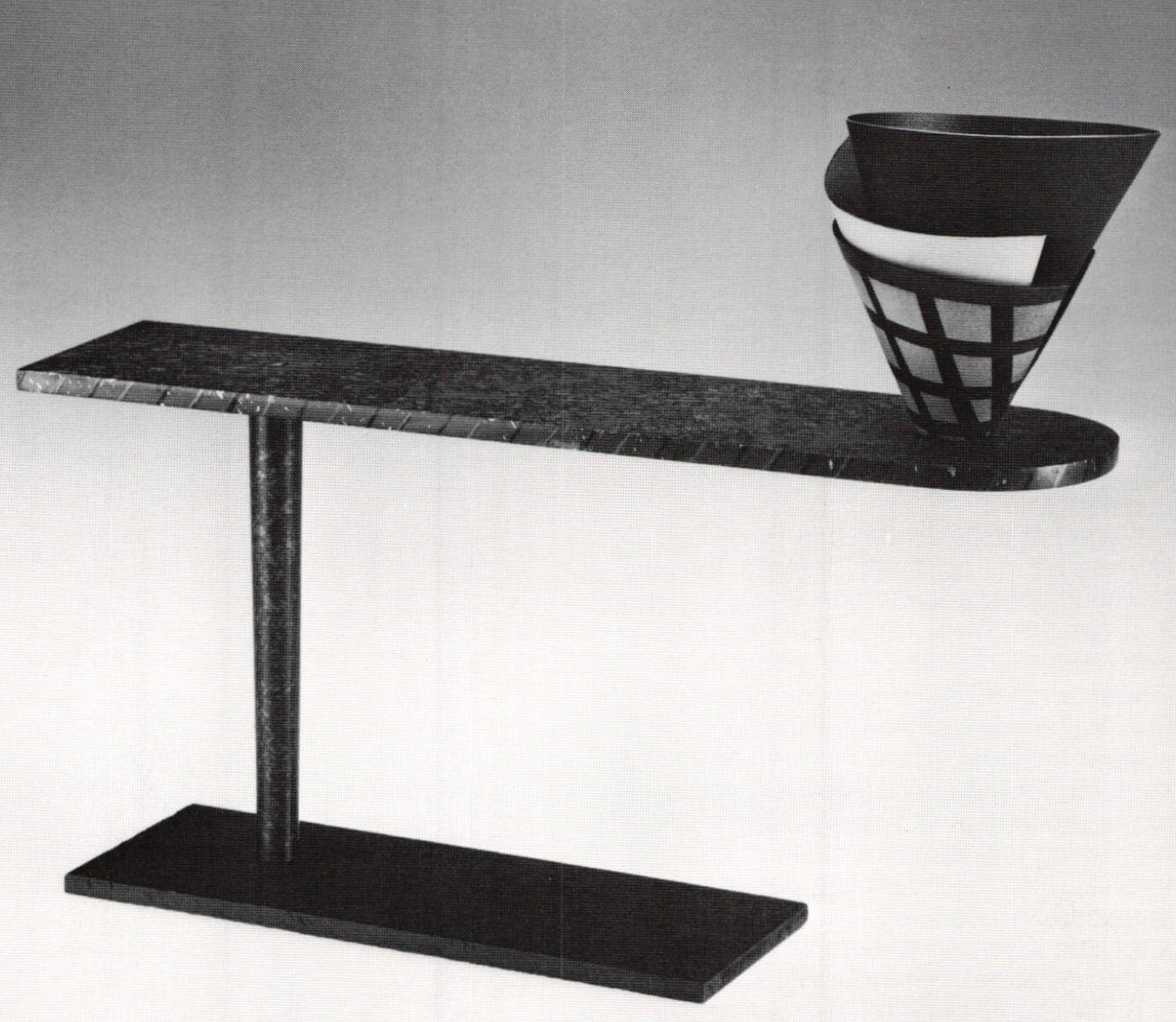 If there was a disappointment in the show, it was that some of the "premier" pieces by alumni were not presented, such as Marjorie Schick's highly experimental smithed piece made under Eikerman's Carnegie Grant, Helen Shirk's early smithed pieces, the work of Leslie Leupp, who chose not to participate, or a more complete representation of Jacqueline Fossée's work. Perhaps in a moment of nostalgia, only fellow participants would know or care. But despite this, the exhibition was a timely and judicious survey, particularly for metalsmiths of all generations. One was keenly aware of the thread of continuity that exists in the design sensibilities the group presented as a whole. This is clearly attributed to our association with a dedicated and loving professor whose experimental approach to technique and design was the inspiration that directed our inquiries to bold new heights and enthusiasm.