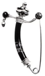 Overall, Grainick appears to find a sinister fascination in the world of streamlined forms that we now take for granted, and perhaps we would rather not be reminded of some of them because of their ultimate purposes. Machines, missiles planes, ships are evident as fundamental sources of inspiration. She is obviously uncomfortable with the preciousness of traditional jewelry, wishing to infuse her work with a significance beyond its role as adornment These wearable sculptures are a personal distillation of many forms that can embody universal menace or unease. She approaches these private feelings in a positive manner by transforming them into beautiful objects.