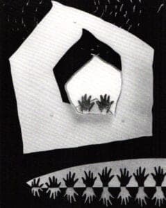 Peggy Hitchcock played a visual game with her audience in Raining Frogs. Frogs, fish, a cat and background linear patterns all were juxtaposed to one another to bring the viewer forward for a better look, then back away for perspective, then closer again, head tilted to break the code. Then, there was the question of the enamel itself. This Seattle enamelist's technical ability and interweaving of other media in her designs made her the master of her tools. Hitchcock used enamel, as she did paint, wood, metal and photography, not for its own inherent beauty, but as a complementary medium, subservient to her overall mastery of design.