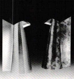 News of the resurgence in holloware has come via an exhibition "Holloware '87." Organized by SUNY College at Brockport, "Holloware 87″ was a national juried exhibition of holloware. As defined in the exhibition's prospectus, any work made in the past two years primarily of metal, derived from the vessel form, would be eligible. Functional as well as nonfunctional work, one-of-a-kind pieces as well as production work were all included in this definition.