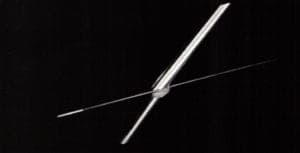 This sense of technology as a culminating effect of the machine-age esthetic and its accompanying loss of humanness also manifests itself in a series of brooches that are supported by an intricate network of girders lifting the center of interest off the body. For Lewton-Brain, our allegiance to the new lakes us further away from the body, the symbol of humanism. In the Radar pieces, as in the brooches, this dilemma is communicated through fabrication techniques. The back structure is based on strong images of 19th-century engineering. The front with its dish form can be manipulated to change direction and sits elevated off the base, making the piece appear to float, no longer a part of the body. Nature has been interrupted by technology, the engineering, while intriguing and intricate, serves as wedge and support between body and object. As we have distanced ourselves from the precious object, so, too, we have moved closer to the alien machine.