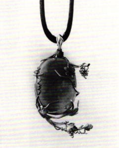 A superb craftsman, Opočenský imbues his material with elusive feelings tor process. Through meticulous carving he responds to the subliminal attraction of instinct and fancy that is the craftman's communicative experience. Where sculpture in the round depends upon the eyes to discern its esthetic suitability, the reduced scale of jewelry trusts the corresponding sense of tactility. For the spectator, these objects are meant to be held, caressed, fingered in the manner of an ancient idol or talisman. They are the ineluctable workings not of the forces of nature but of a craftsman searching for the élan vital of nature.