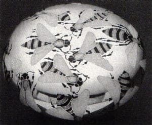 West Germany was a strong second with 17 exhibitors. Kai Hackeman received the prize for champlevé with his brilliant-colored enamels. Great Britain had some fine work in the Biennale, which incorporated more traditional methods, but was well executed. Three British pieces were purchased by a museum in Geneva, Switzerland, including a Bee Box by Philip Barnes. Barnes, a second-generation London jeweler, used fine cutting and piercing, then champlevé and basse-taille enameling in the cut-out areas.
