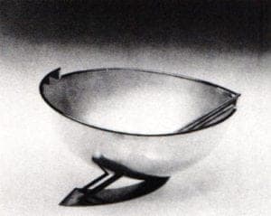 In Germany, work from Dusseldorf, Hildesheim and Nürnberg favors linear geometry. The Scandinavians tend to prefer simplicity in design though often a hammered effect is achieved on the metal surface. The British entries often show a revival of the art of chiseling and engraving, in particular an inclination for detailed ornament. The famous Vakschool Schoonhoven, Netherlands, is also represented by various talented students and teachers who find soft outlines preferable. The Austrian silversmiths presented some interesting examples of liturgical silver.