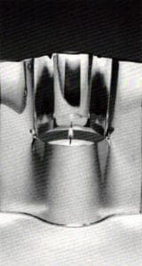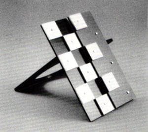 Zelig Segal, an Israeli, has fashioned a yahrtzeit (memorial candle) container from a single sheet of metal; it is horizontally pierced, with a pocket pulled from the sheet (as if it had been clay or other plastic material) forming a place in which to set the little wax-filled glasses solo commercially as memorial candles. The concave back forms a reflector for the flame and contains applied metal Hebrew letters forming the word "Remember." The piece is made of silver plated brass, and the letters appear to be gold plated. The piece is so highly polished that it is, unfortunately, difficult to discern the inscription because of the glare. If, perhaps, the portion behind the letters had been sandblasted to reduce the shine and the letters oxidized rather than gilded, the statement could be more readily grasped. The design is nevertheless a paradigm of elegance.