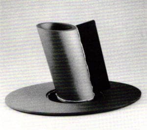 The works of John Wittersheim share this reverence for the past, specifically early industrial artifacts. This body of work incorporates the found object while altering its original function and context. Wittersheim "rescues" simple discarded industrial components and recombines them, often with precise, machine-tooled parts of his own making, in order to create a hybrid that is formally elegant and ambiguous in origin. The obsolete quality of the cast iron remnants contrasts oddly with the precision of lathe-turned granite and aluminum additions.