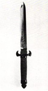 Most of the blades in Phillip Baldwin's first one-person show at the National ornamental Metal Museum are of pattern welded steel. Since the nature of museum installations often sabotages a tactile appreciation of the work (feeling the blade, its unity, sharpness, smoothness, the way the weight is or is not distributed from blade tip to handle end), the only suitable critical approach is to recognize visual comparisons. For example, the juxtaposition of the knife Tooth (1979), with the smaller Ladytooth (1980), both with purple heartwood sheaths and handles, trimmed with silver and brass, and simple, folded steel blades suggests a sleek, contemporary tandem.
