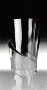 In Recent Works David Jaworski displays a small selection of sterling silver earrings, neckpieces, pins and a bracelet. Primarily a sculptor, he shows two pieces of bronze sculpture adorned with blown glass. In most of this work, the artist explores several variations of the helicoid, Jaworski's pursuit of novel composition conjoins his employment of hollow forming techniques. His superbly finished structures are simple, uncluttered and lyrical, with just enough movement to resist tedium. Each piece is meticulously constructed, replete with a mirror finish to emphasize its dynamic articulation. While the jewelry is of a high caliber, it is surely marketable. Pearls adorn some pieces, but the most successful statements are stark and absolutely devoid of surface ornamentation.