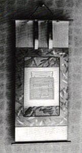 Here is the traditional Japanese scroll with its lovely subtle brushwork in quietly contrasting blacks, gold and silver set upon a ricepaper background with a natural wood frame. All is quiet and harmonious until we delve into the information presented on the scroll. Upon doing so, we are immediately brought into the late 20th century, if not the dawning of the 21st, by a finely and meticulously etched image of a new "super" stereo. This image immediately brings to mind all of our current obsessions with Japanese culture and technology as well as where they will/may take us in the future. For me, this may be the most profound piece in the exhibition, as it forces one to confront and reflect on a multitude of current geo-political issues.