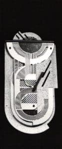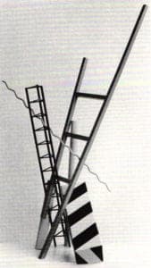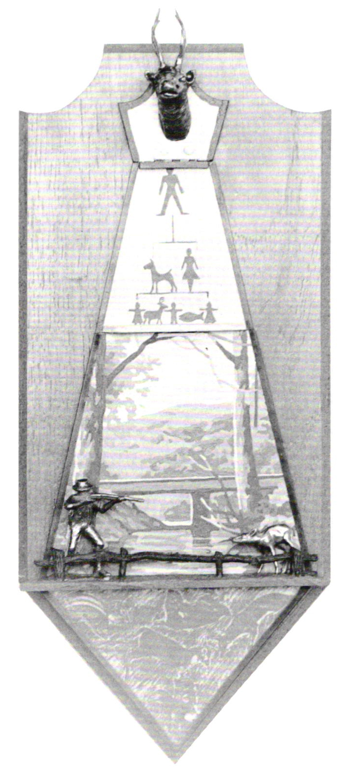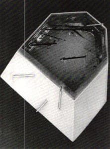 Roger Snyder, and others, used metal and other materials for mixed-media constructions. Though anyone who has played with electricity would have left a visceral response to Snyder's Only a Means to an End, the dynamic power of this piece came from the juxtaposition of readymade photo mural, fuse boxes and plastic men, one literally "burnt out," sitting in for the fuses. The varied meanings elicited by form and materials heightened awareness of the potentials of human use and abuse.