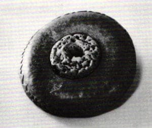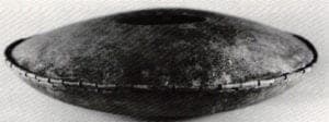 Hinged Disk, as well as several double-shelled bowls, reveals Ernest's fascination with decorative mechanical seams. These are usually assigned a strategic role in surface design, and color often assumes a sudden phosphorescence when it encounters them. The Disk, a wide and low-lying vessel, consists of two convex hammered disks joined at the outer edge by a coppersmith's hinge. A ring of wire passes through alternating tabs cut from each surface. The circular expanse of rich patina, predominantly blue with copper highlights, along with the simply patterned seam are ultimately governed by an implicit geometry. Yet is only implicit, since the subtle rising and falling of surface and seam, the planned deviations from geometry, reflect the natural order of things. Underlying the piece's easy elegance is a careful observation of nature's superb sense of shape and fittings.