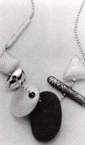 Included also in the show was the work of Tom Lorio, Baton Rouge, LA, Colette, Berkeley, CA; Mary Chuduk, Tempe, AZ; Barbara McFayden, Chapel Hill, NC; Peggy Johnson, Philadelphia, PA; Els Herber NYC, David Peterson, W. Lafayette, IN; Randy Long, Bloomington, IN; Harold O'Connor, Taos, NM; Jamie Bennett, New Paltz, NY; Richard Mawdsley, Carterville, IL; Kathy Buszkiewicz, Cleveland Heights, OH; Michael Good, Camden, ME; Bruce Metcalf, Kent, OH; Mary Lee Hu, Seattle, WA; Claire Sanford, Cambridge, MA; Barbara Heinrich, Rochester, NY; Micki Lippe, Seattle, WA and the curators, Barbara Minor and Christopher Hentz.