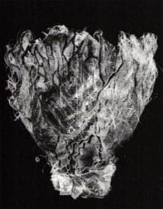 Three artists reified the idea of container as vessel in vividly different ways. Lynne Hull highlighted the deep darkness of Ritual Bowl's center void by attaching a ring of black tubing Subtle patination, consistent over the spun copper and aluminum form, evoked images of ancient times and venerated use, while the play of opalescent greens and blues on Joan Austin's pouchilke Mermaid's Jewel Box embodied the ephemeral Loom woven of mylar, linen and wire, it referred, in its sensuality, to another container, the sea.