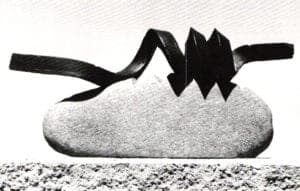 The stress on contemporary uses of traditional materials was noted by Baton Rouge State Times-Morning Advocate reviewer Jean McMullan who wrote: "Pat Flynn of New Paltz, N.Y., uses a simple colored pencil to get the needed color in his jewelry, Kate Wagle of Mesilla, N.M., includes different colors of gold plate in her delicate pins. The combination of unrelated elements is one characteristic of Fred Woell's work. Thomas Mann of New Orleans also can be credited with a like combination of unusual materials as well as perhaps the first jewelry artist to incorporate collage in his work. Another new concept is to be found in the slightly irregular surfaces of enameled pieces—defying the tradition of the very smooth surface, Leonard Urso of Scottsville, N.Y., creates jewelry that emphasizes the material but also includes in his simple shapes faint images that emerge from the material."
