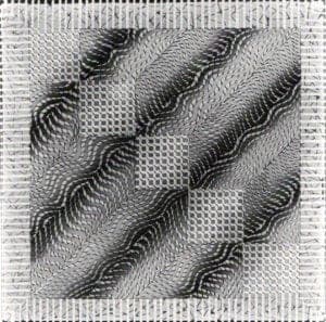 Numerous Panel Studies are of diminutive scale, like vignettes of constructions using sterling, stainless, plastic and pearls. The luster of the pearl creates an instant focal point. On some panels rods extending beyond the rectangular base punctuate the void and create tension, energy and balance.